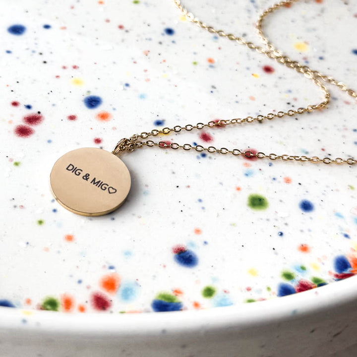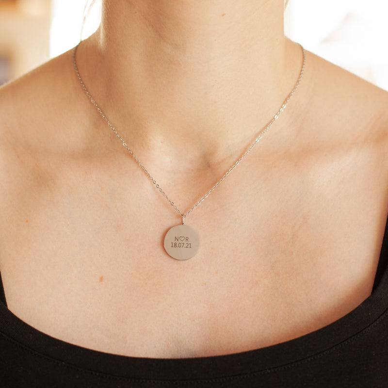 På forsiden kan du få gravet et symbol og en tekst på to linjer, hver med plads til 20 tegn, hvilket giver mulighed for at tilpasse den personlige historie. Bagsiden kan graveres med tre linjer med 10 tegn på hver, hvilket gør det nemt at tilføje en særlig hilsen eller dato. Smykkerne findes i farverne: guld og sølv, hvilket giver mulighed for at vælge den stil, der passer bedst.