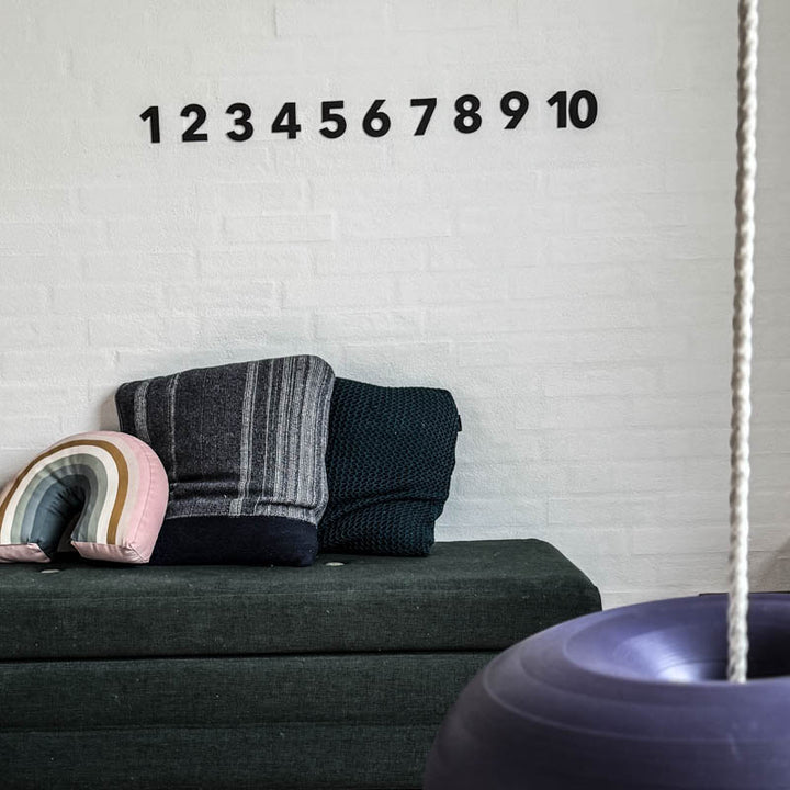 Hæng talrækken op på væggen i børneværelset og motiver barnet til at øve sig på tallene. De enkle og stilrene tal kan nemt passe ind på børneværelset, hvor de både kan dekorere og hjælpe barnet til at lære at tælle.
